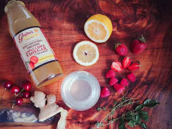 A delicious pick-me-up apple cider vinegar drink. This drink is made with Goulter's Organic Apple Cider Vinegar, lemon, water and honey as a sweetener. It can be easily modified for different seasons and occasions.